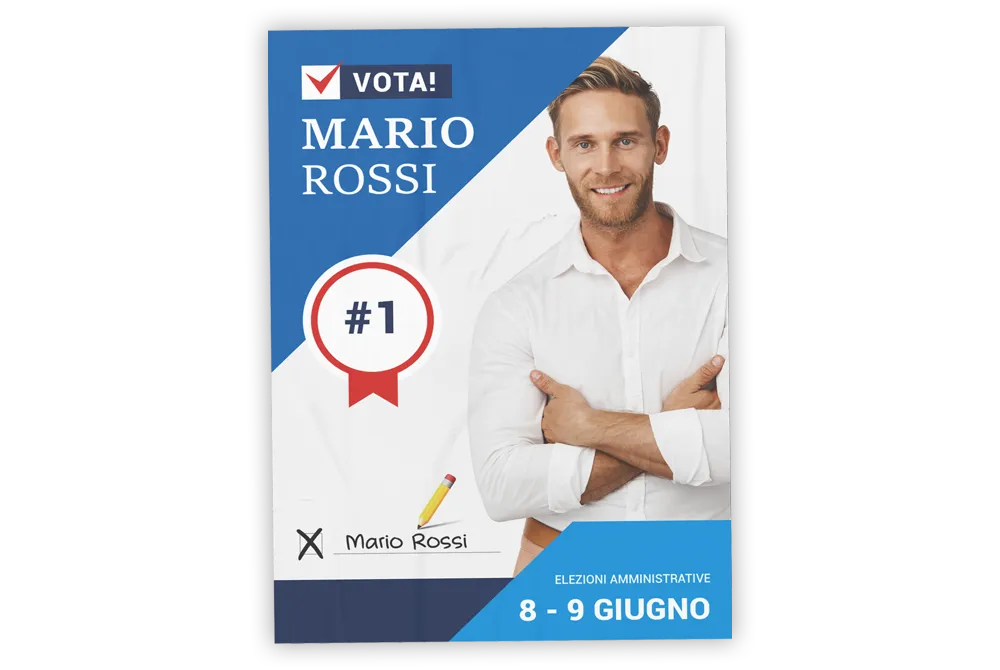 Puoi inviarci il tuo file con la grafica in formato PDF o, se preferisci, possiamo impaginarlo noi. Il nostro reparto grafico ti affiancherà durante la fase di progettazione: sarà sufficiente indicarci come vuoi realizzare le tue bandiere elettorali e noi ti invieremo delle proposte grafiche su misura.