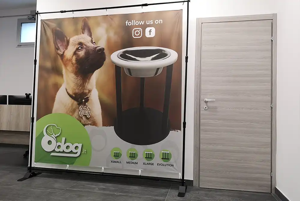 Puoi inviarci il tuo file con la grafica in formato PDF o, se preferisci, possiamo impaginarlo noi. Il nostro reparto grafico ti affiancherà durante la fase di progettazione: sarà sufficiente comunicarci come vuoi realizzare il tuo fondale telescopico personalizzato e noi ti invieremo delle proposte grafiche su misura.